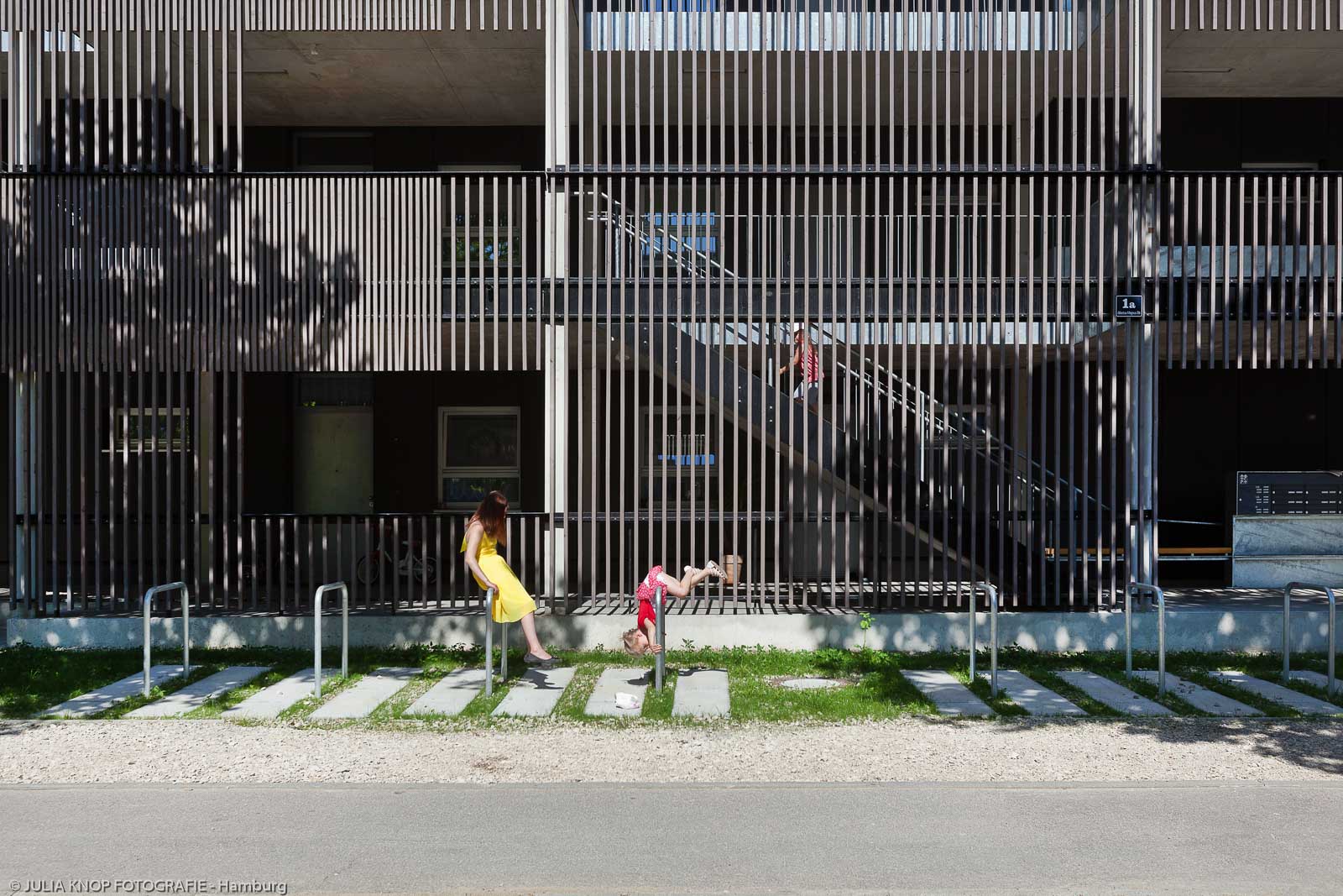 Bitte beachten Sie, dass nur der rechte Bereich des Quartiers durch die Freianlagenplaner umgesetzt wurden, da zwei weitere Bauabschnitte durch andere Architekten mit deren Freianlagenplanern verwirklicht wurden. Eine Übersicht über die Bereiche/Planer finden Sie hier.