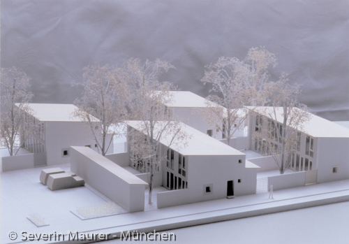 Zusammen mit der GWG und dem Stadtplanungsamt entwickelte ich städtebauliche Alternativen. Das Konzept mit den zueinander versetzten Häusern wurde durch seine Kleinteiligkeit dem Standort am meisten gerecht.